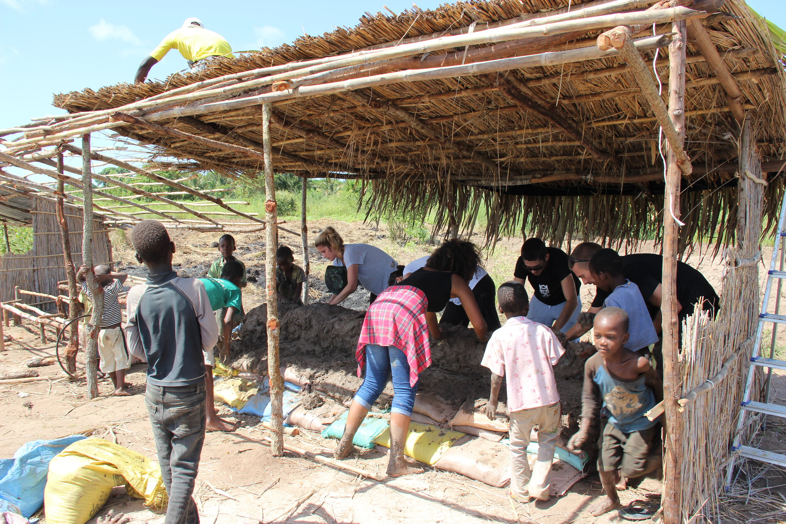The UN has reported that sports participation is important for teaching respect, establishing social inclusion, and improving health through physical exercise. Importantly, it also fosters female and youth empowerment. Being a member of a team creates a feeling of belongingness and creates coherence between its members. The WHO has reported that physical inactivity is the fourth leading risk factor for global mortality (Sport and the SDG's, UN). Through sports, people can stay in shape while having fun. Project Vita wished to construct a soccer field in Beira with facilities that would allow players to prepare for games and recover from physical activity in the heat. We built a roof and benches using local materials such as reed and mud. Of course we had to celebrate this project’s completion with a soccer game!